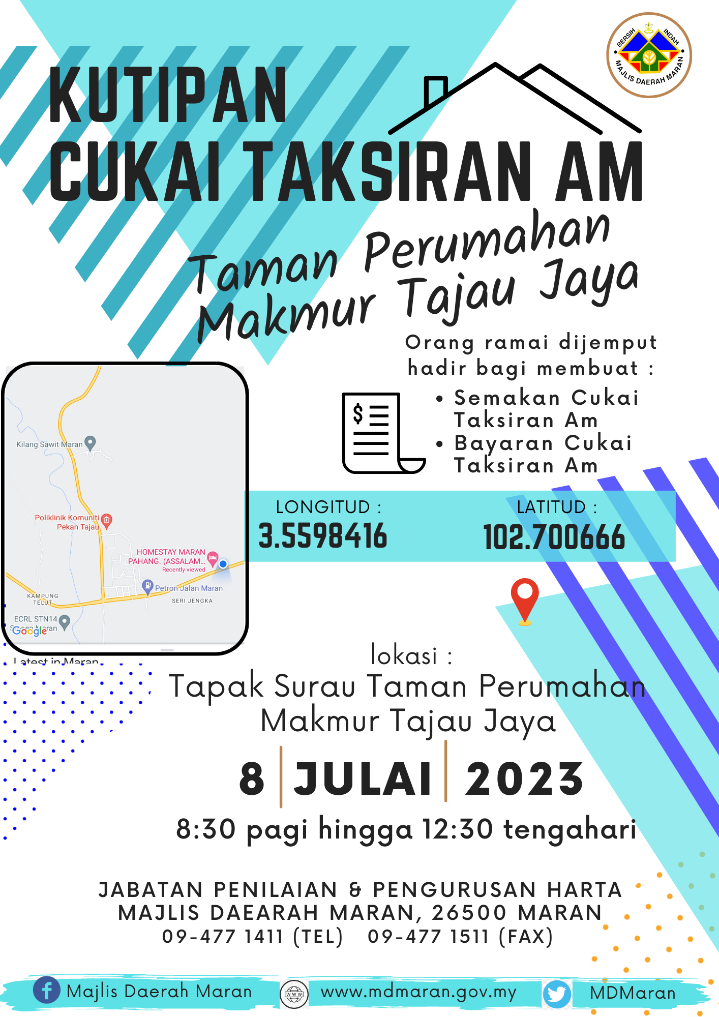 Lokasi kaunter kutipan : Tapak Surau, Taman Perumahan Makmur Tajau Jaya